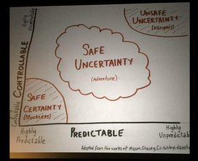 Before lunch we had the treat of Steve Chapman. Steve made a compelling case that we spend most of our lives deliberately avoiding the creative zone and presenting lots of ideas for getting out of our comfort zones, including some toe-curling conference experiments. Plus great, hand-drawn, pseudo science charts making good points: